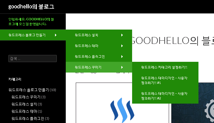 워드프레스 블로그 만들기 메뉴에 카테고리들이 추가가 되었는데요.
