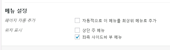 그리고 메뉴 설정에서 카테고리 위치를 표시할 곳을 정해줍니다.