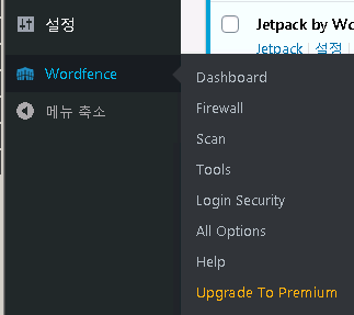 이제 사이트 관리자에 위와 같이 Wordfence메뉴가 추가되었습니다.