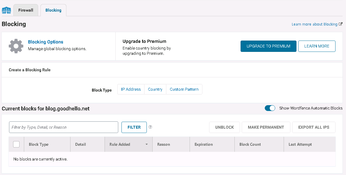 그리고 Wordfence 에서는 웹 방화벽 (Firewall) 기능을 제공하고 있습니다.