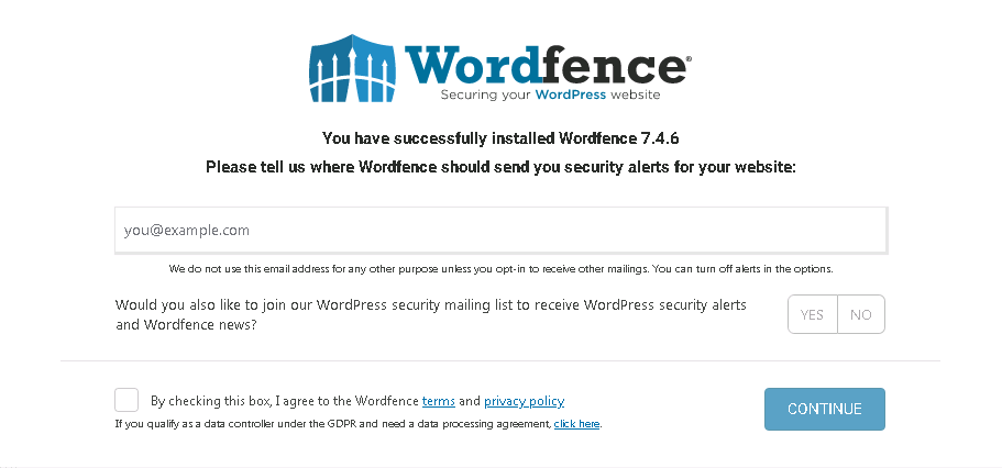 wordfence 플러그인을 활성화 하면 간단한 정보를 입력하고 사용할 수 있는데요.