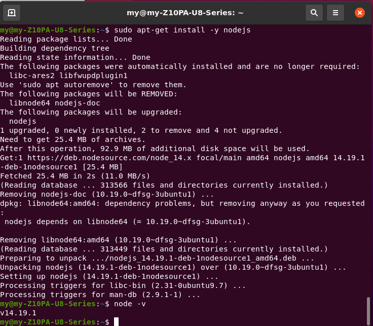sudo curl -sL https://deb.nodesource.com/setup_14.x | sudo -E bash -