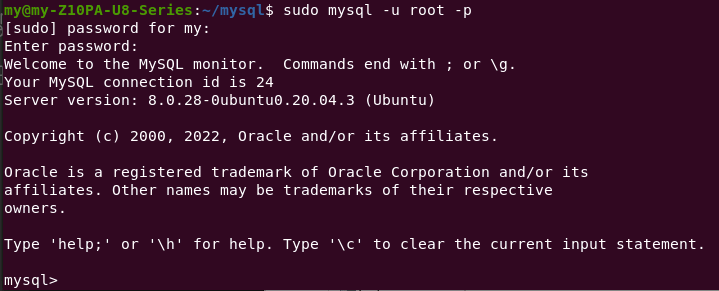 sudo mysql -u root -p