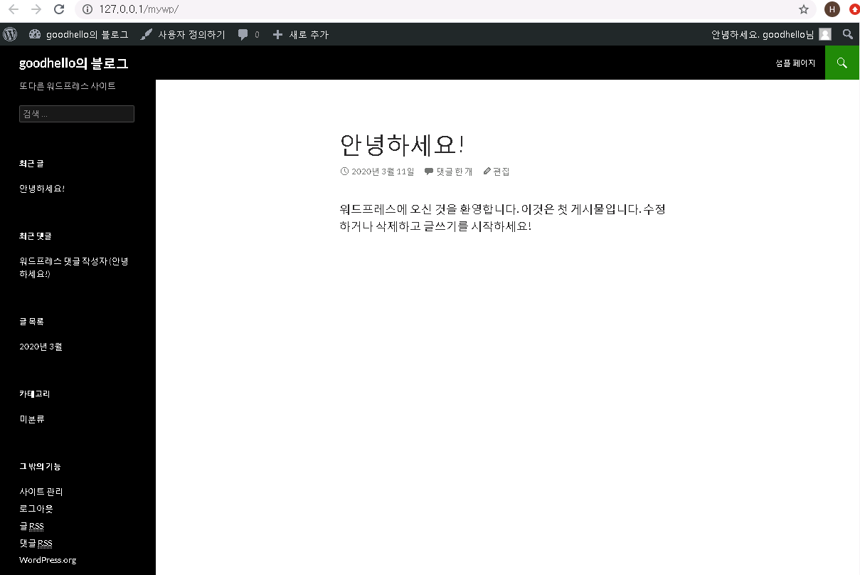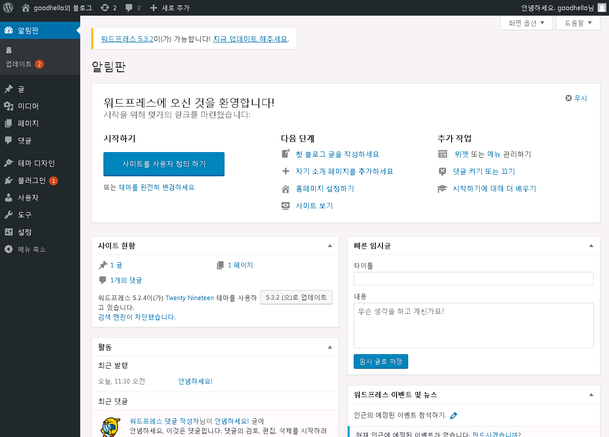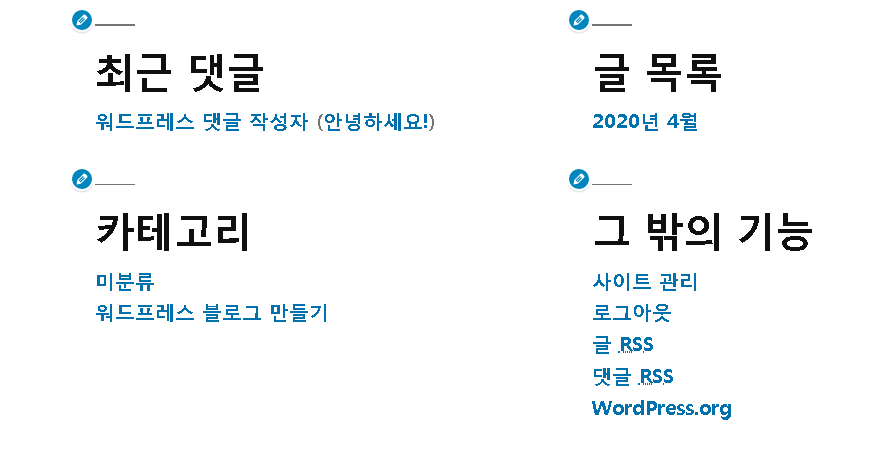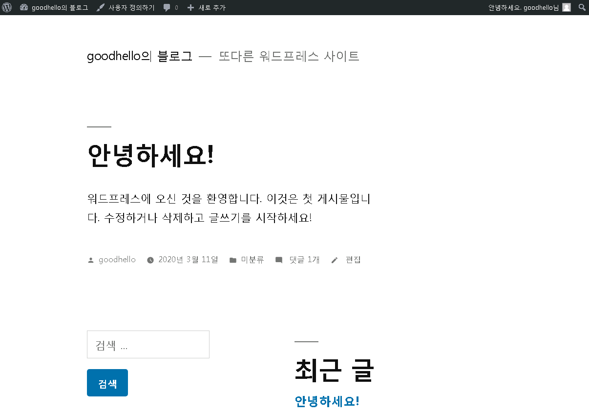 워드프레스를 처음 설치 했을땐 기본적으로