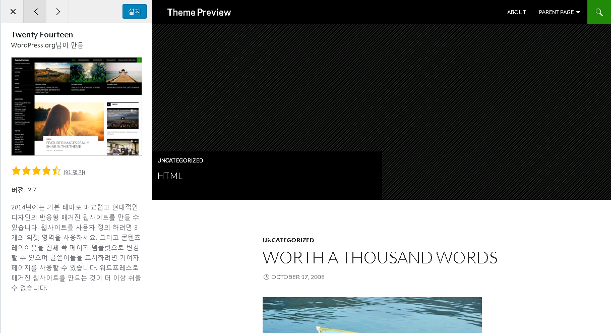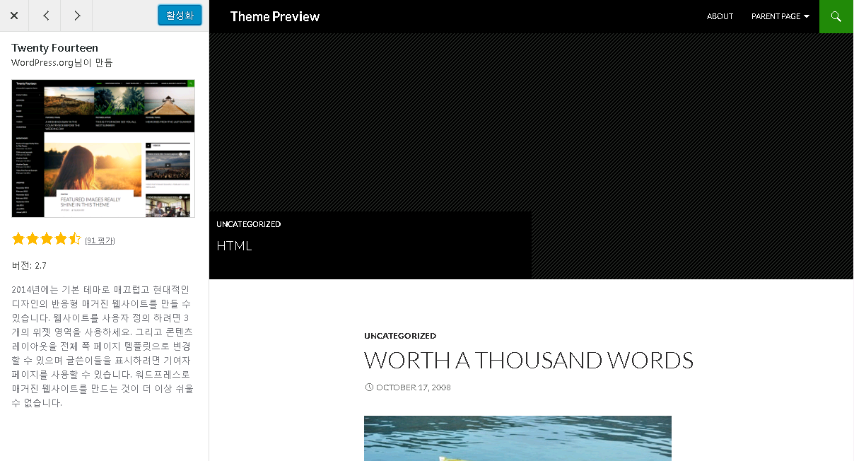 전 개인적으로 Twenty Fourteen 테마가 마음에 들더군요.