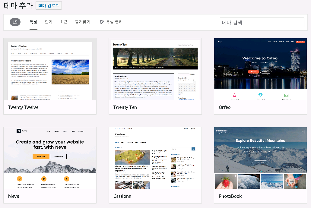 그래서 새 테마 추가하기를 눌러 새로운 테마를 추가해 보겠습니다.