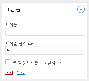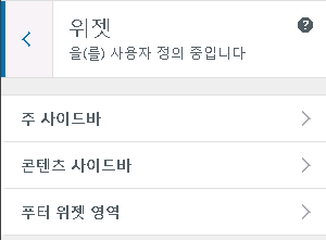 위젯 메뉴를 이용하여 여러가지 영역의 위젯들을 관리할 수 있습니다.