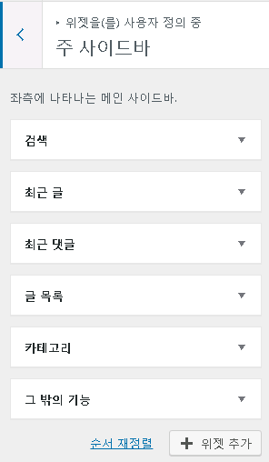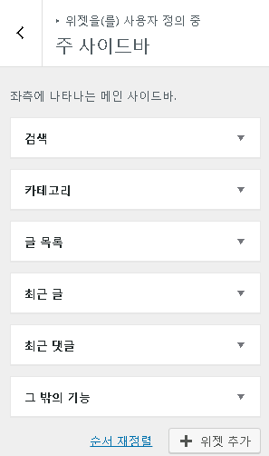 그리고 각 사이드 바의 위젯을 눌러서