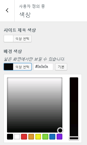 색상에서는 사이트 제목 색상과 배경 색상을 바꿀수 있습니다.