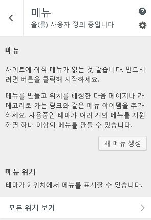 사용중인 테마, 사이트 아이덴티티, 색상, 헤더 이미지 등등 테마를 쉽게 바꿀수 있도록 많은 메뉴를 제공하고 있는데요.