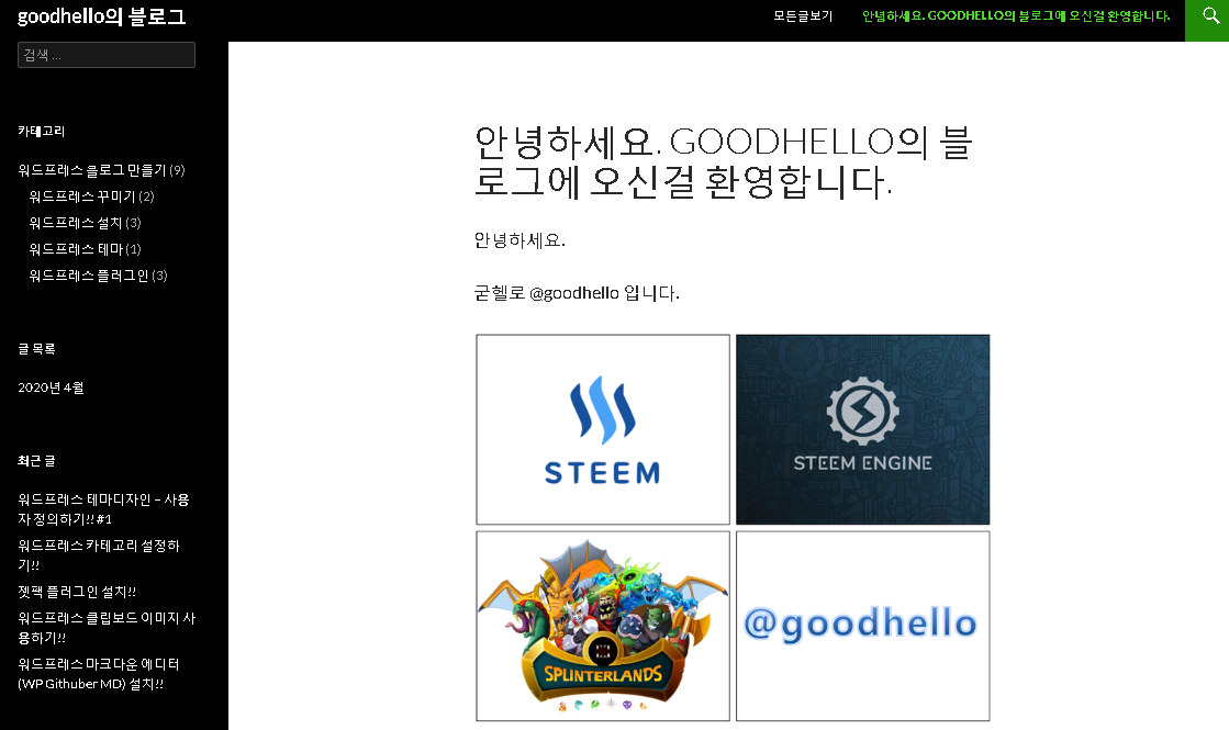 이제 제 블로그에 접속하면 이 페이지가 기본적으로 나오게 됩니다.