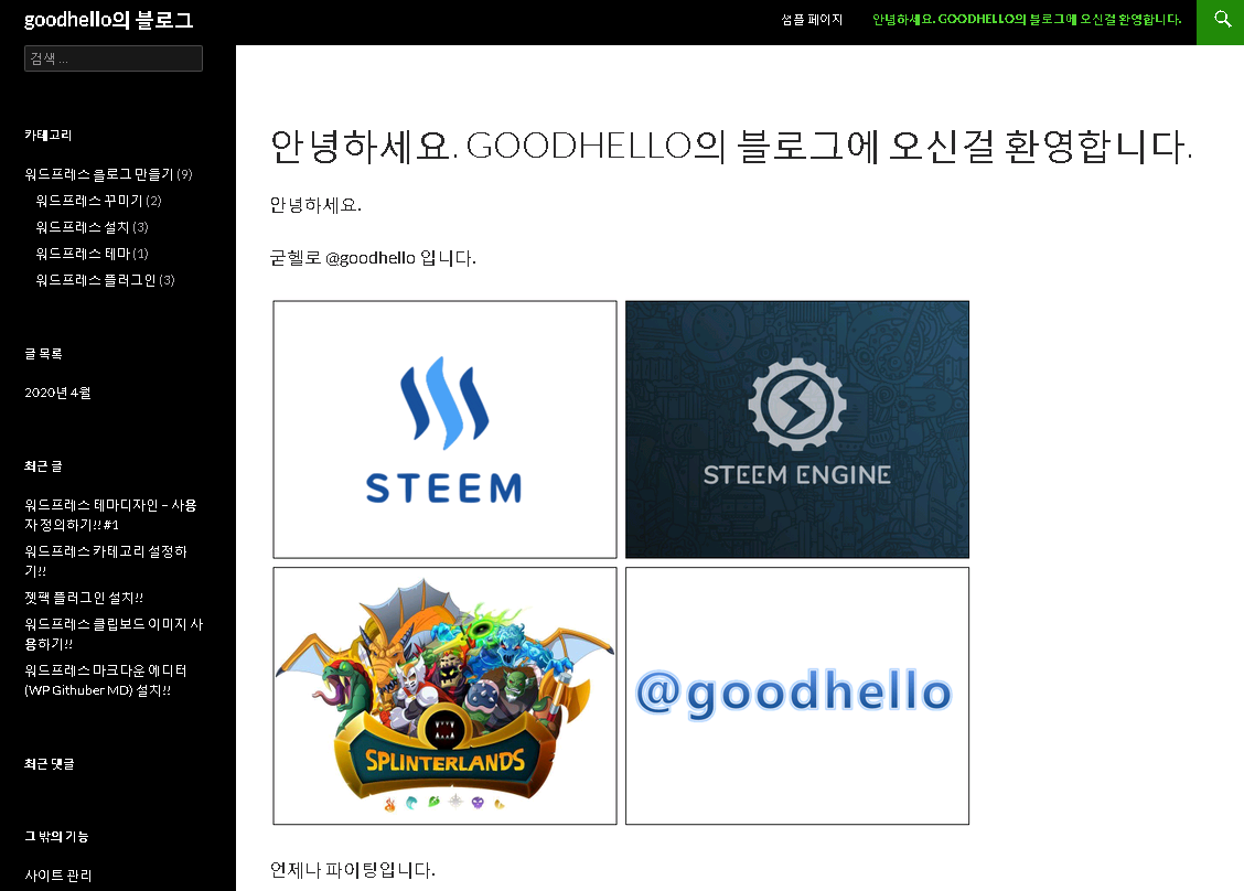 그리고 다시 블로그에 접속해보니 이제 샘플 페이지가 보이지 않는군요.