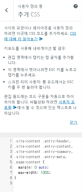 그래서 추가 CSS 이 곳에 다음의 코드를 넣어서