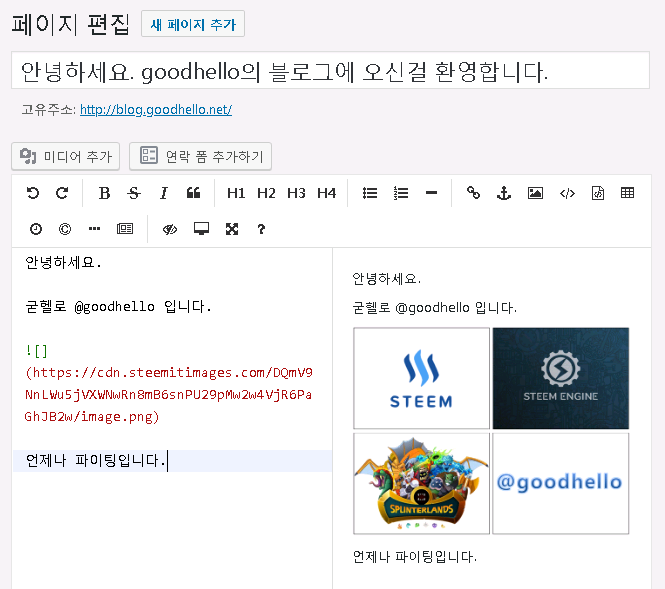 그러면 사이트의 홈페이지가 방금 생성한 홈페이지로 변경되게 됩니다.