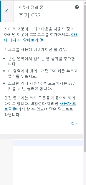 이 곳에 CSS 코드를 넣어서 사이트의 테마 디자인을 커스텀으로 변경할 수 있는데요.