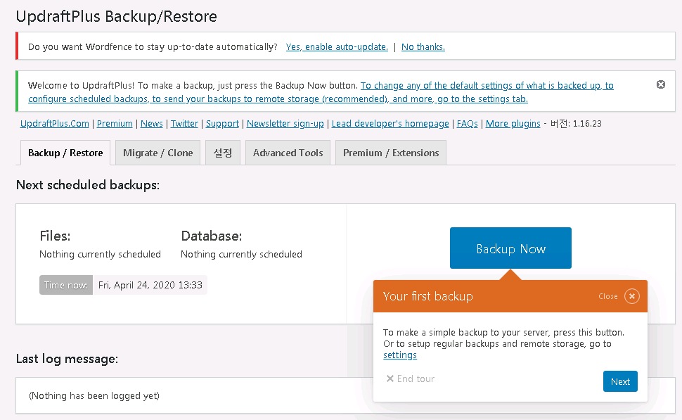 그리고 프리미엄으로 유료서비스를 이용하면 사이트 이전 기능이나, 증분 백업, 기술 지원 등을 받을수 있으므로, 여건에 따라 프리미엄 서비스를 이용하시면 되겠습니다.