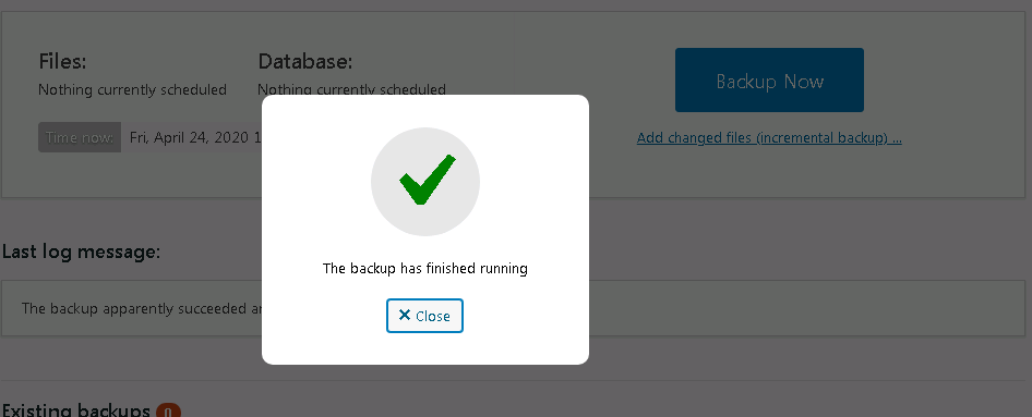 백업이 완료가 되면 알림창을 띄워 알려줍니다.